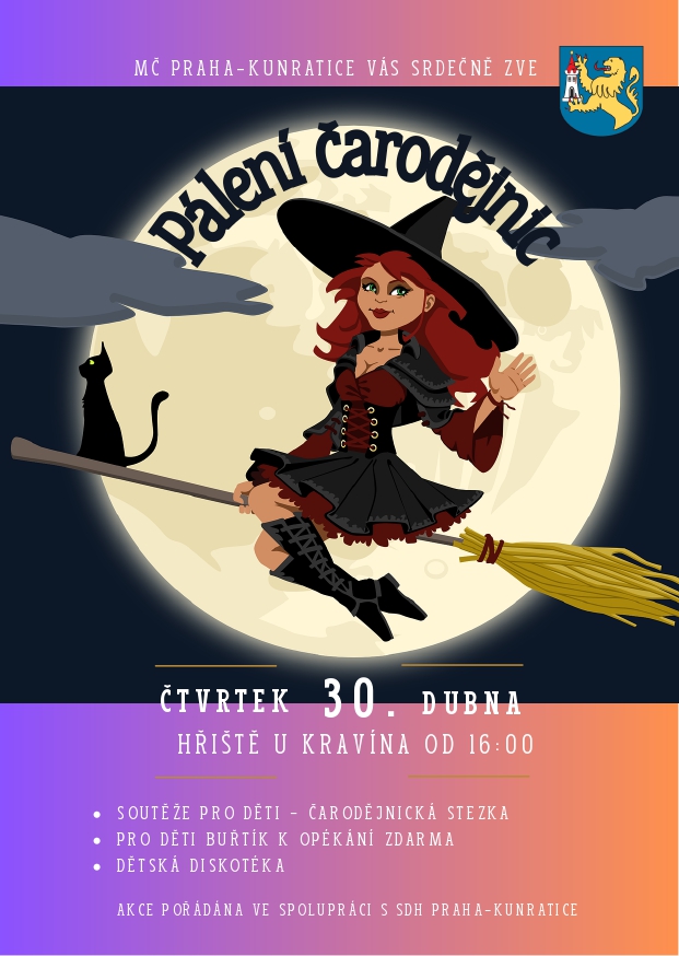 Městská část Praha Kunratice srdečně zve rodiče s dětmi na Pálení čarodějnic.