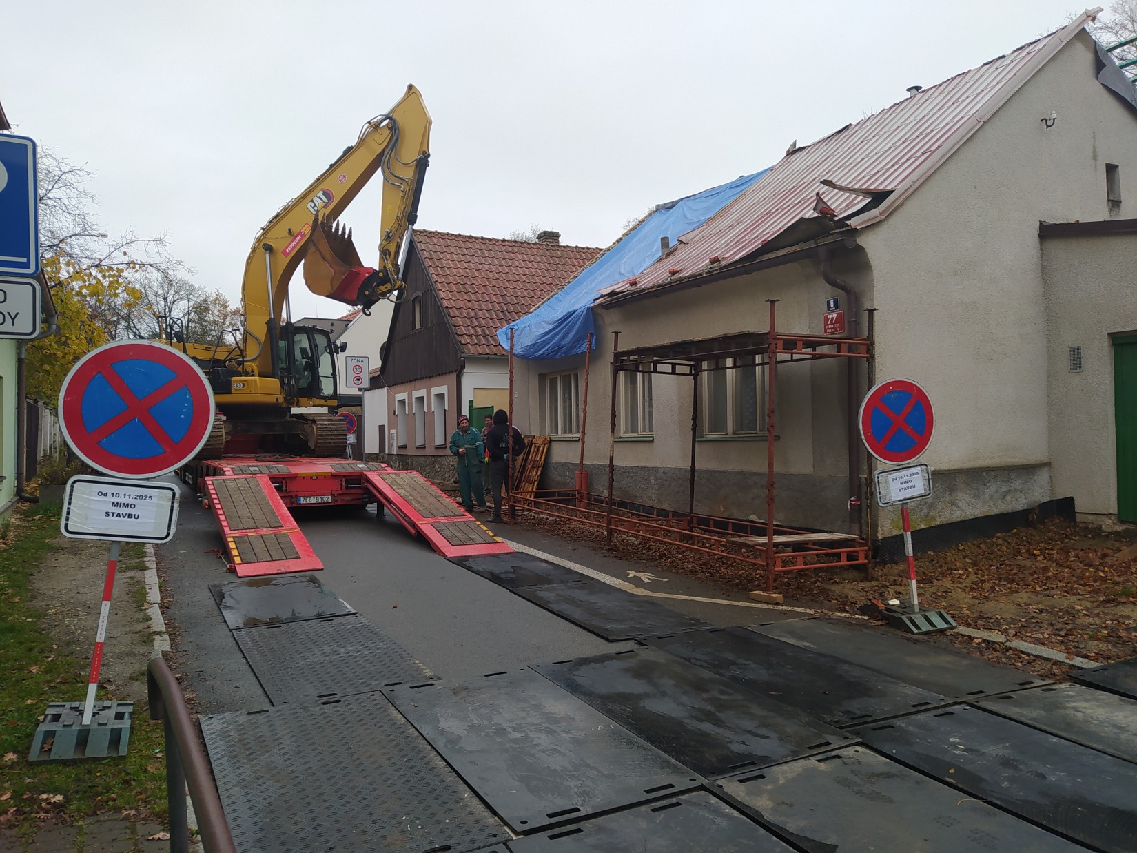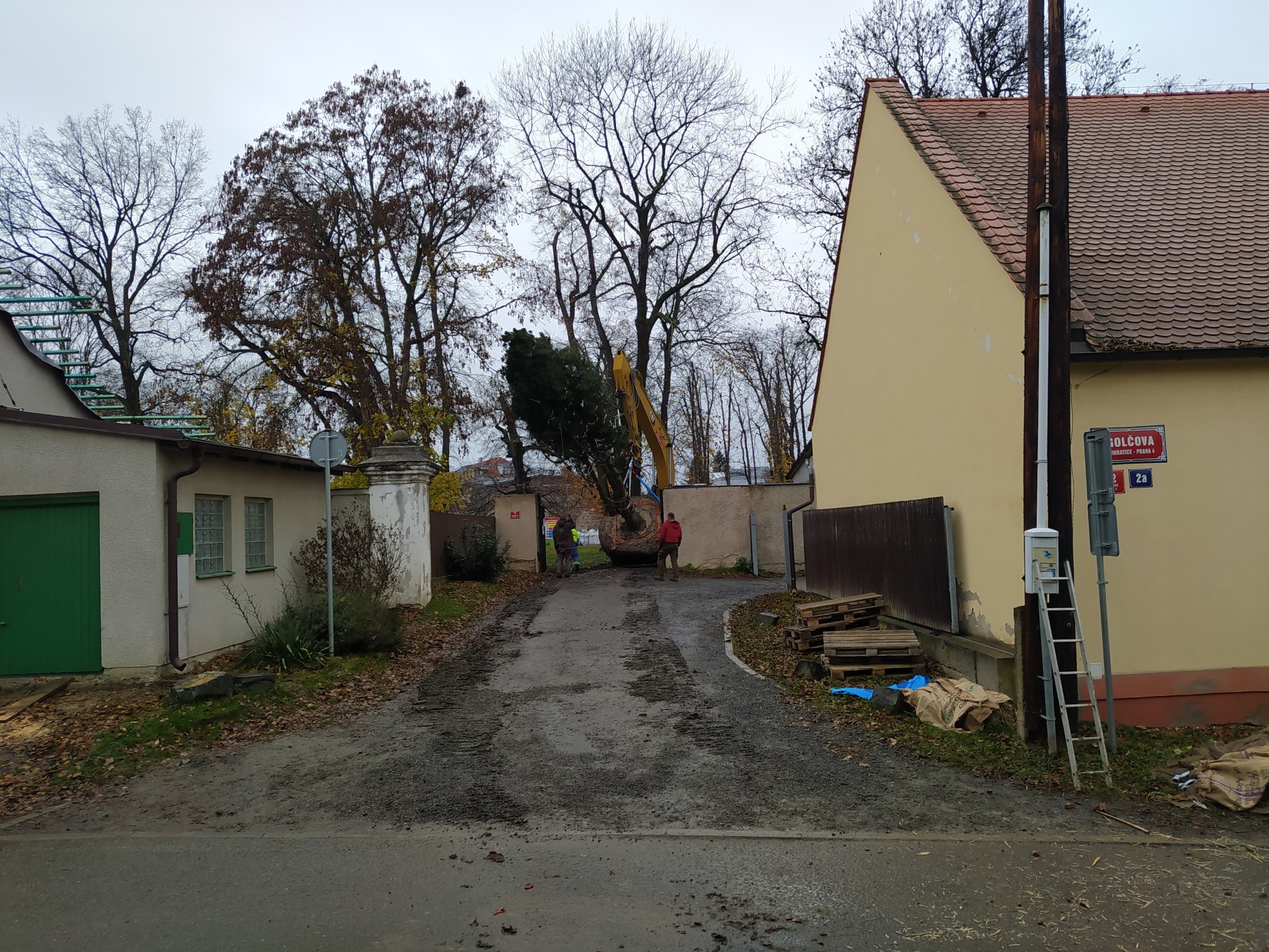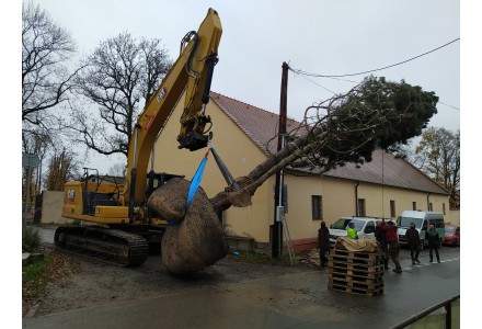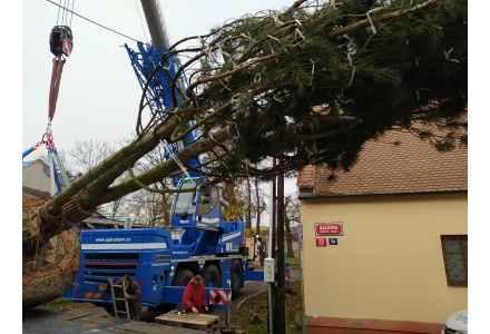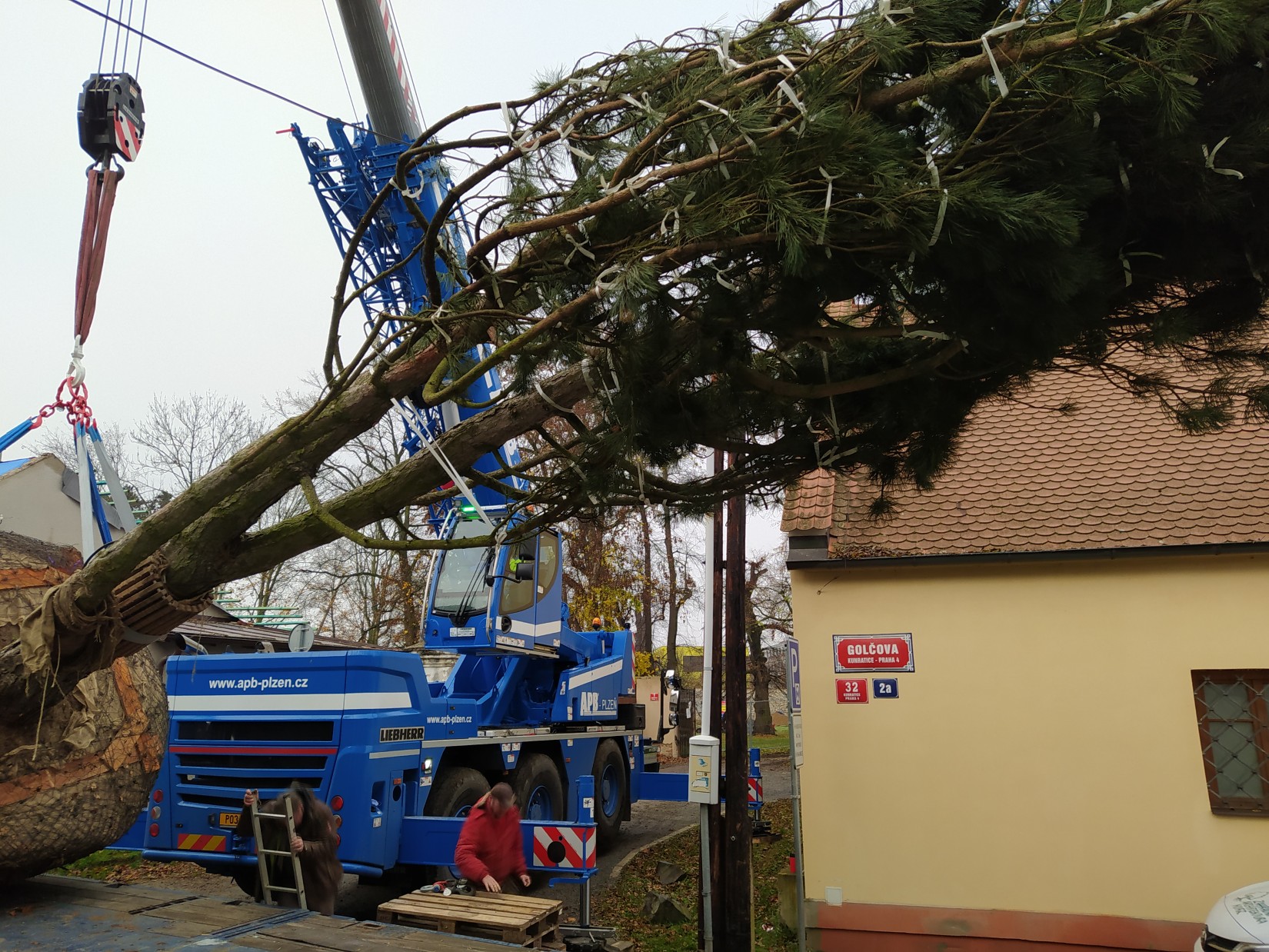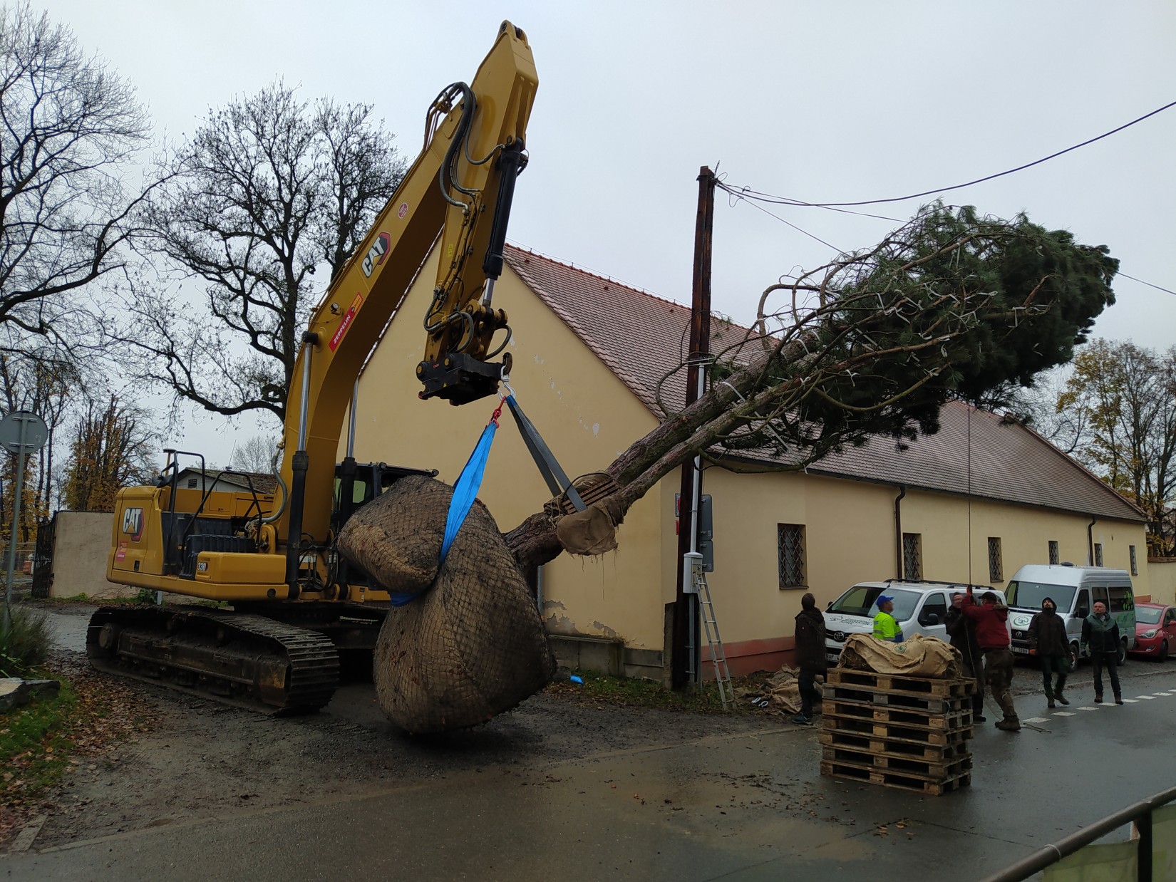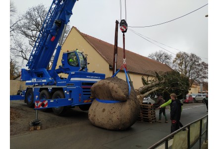 Včera byla přivezena pomocná technika a dnes velký strom doputoval do parku u kunratického zámku. Odborníci to dobře zvládli a tak se nemusí čekat dvacet let na krásný vzrostlý strom.