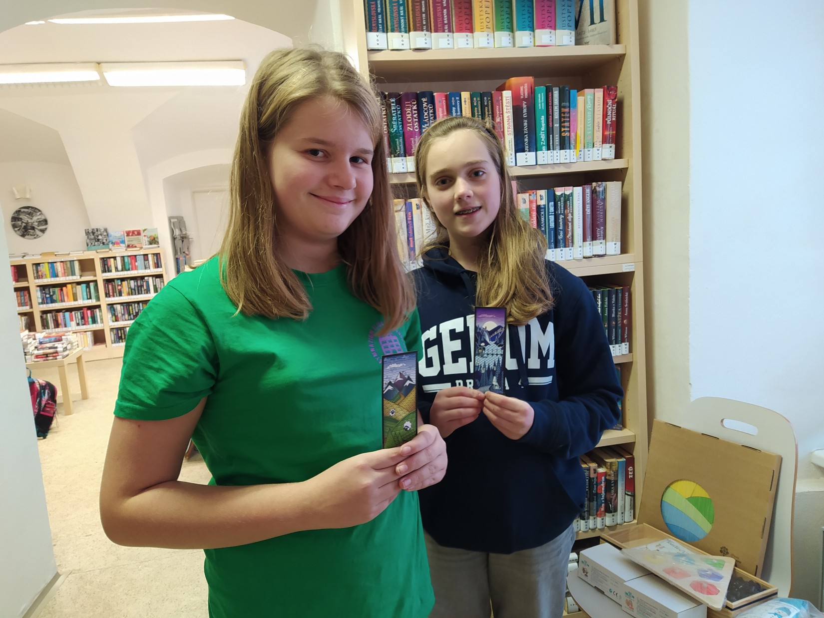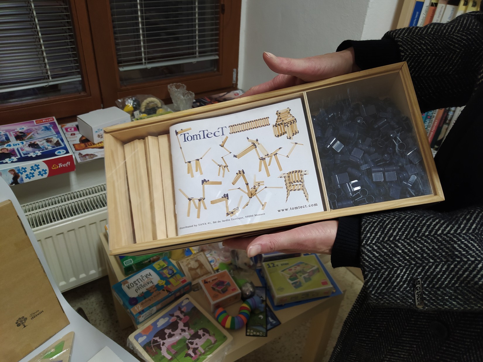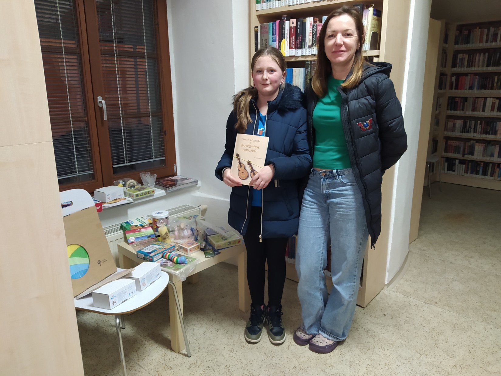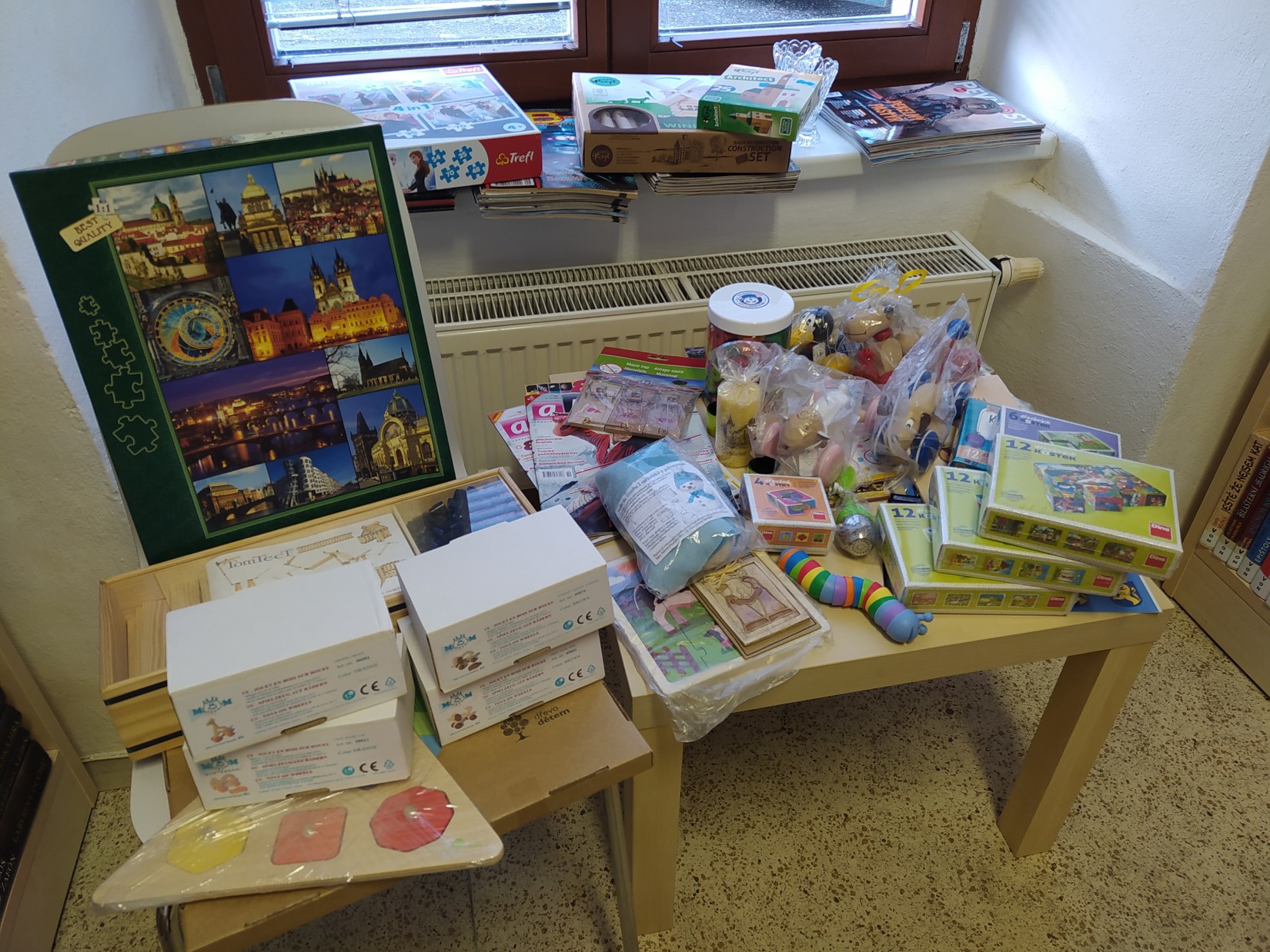 Krásný den plný krásných zážitků. V knihovně se opět rozdávaly dárky a pak najednou přijde naše čtenářka s óóóbrovskou taškou, a že nese další dárky, pro čtenáře. Paní přinesla krásné dřevěné hračky, ze kterých se hned vzápětí další návštěvníci zaradovali. Na fotkách jsem se pár momentů snažila zdokumentovat. Je tam i sympatická dárkyně, které mockrát děkuji, za její velký dar.