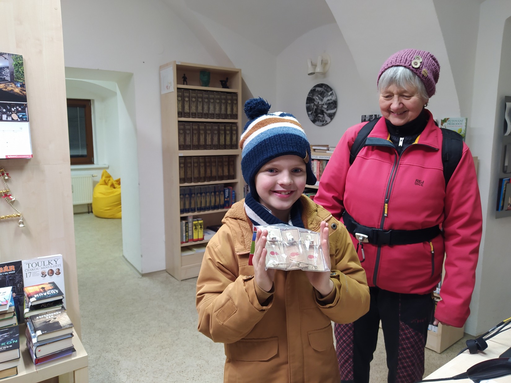 Včera v kunratické knihovně pokračovala vánoční akce dárkobraní. Přišla i skupinka dětí z Motýlku. Děti všem zazpívaly koledy a vybraly si dárky. Další chlapec si odnesl praktický dárek myší pastičky, které nasbíraly už mnoho úsměvů a historek čtenářů při vybírání z dárků.
